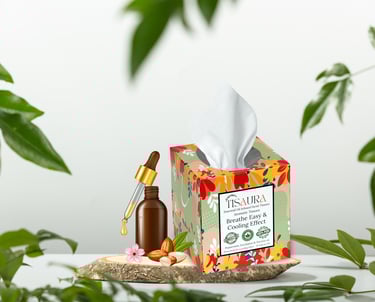 Feel relief in every breath. Designed for moments of nasal congestion or seasonal discomfort, these tissues are infused with peppermint, eucalyptus and tea tree oils - complemented by natural menthol crystals for a cooling sensation. Ideal during colds, stress or long hours.
