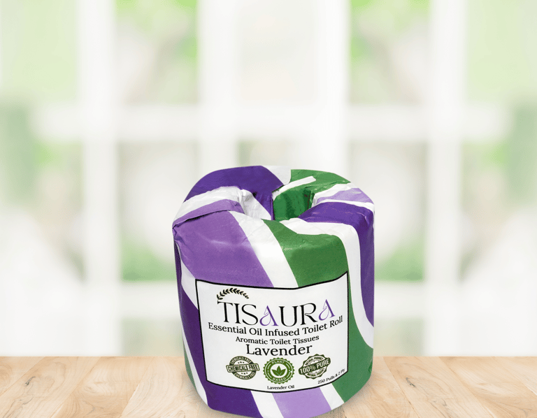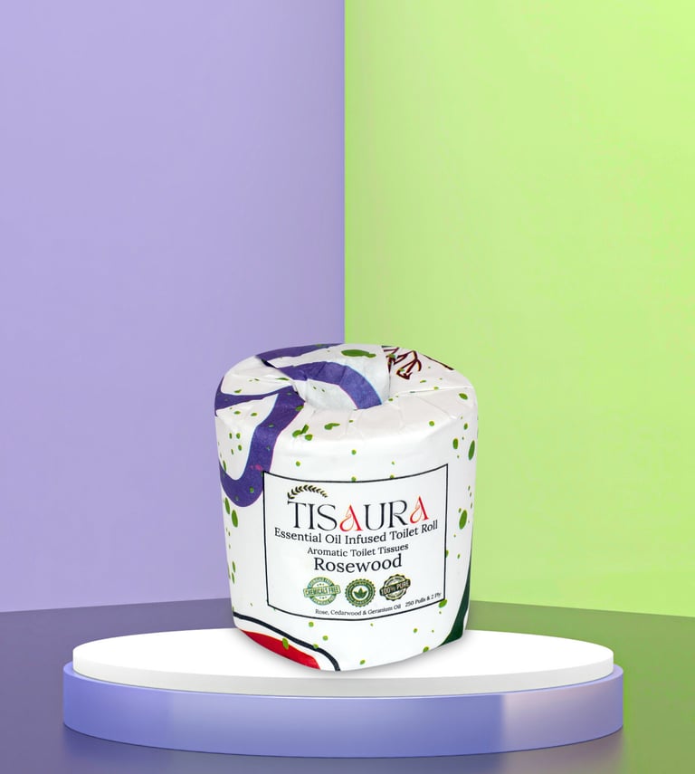 A timeless floral scent that adds elegance and freshness to your daily routine. Elevate your bathroom experience with TISAURA’s aromatic toilet rolls, subtly infused with 100% natural.