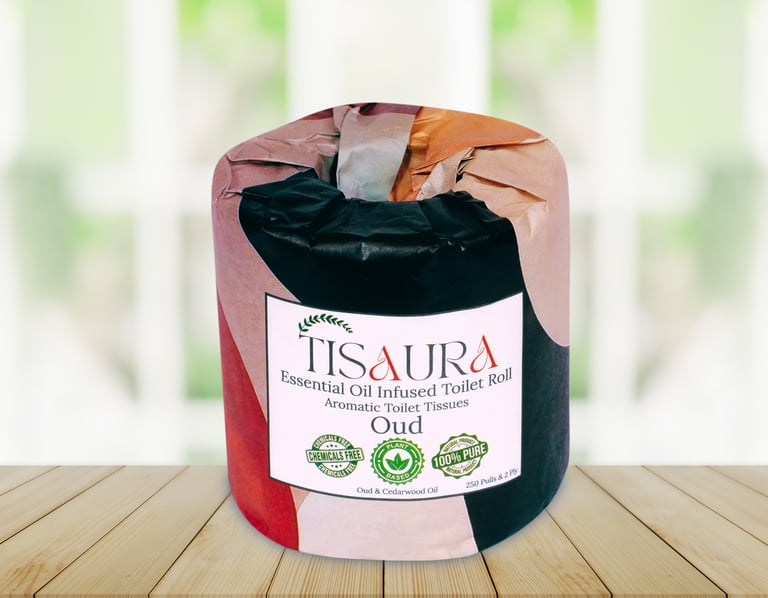 Elevate your bathroom experience with TISAURA’s aromatic toilet rolls, subtly infused with 100% natural, plant based essential oils - not in the tissues, but in the cardboard core. A deep, luxurious aroma that brings a touch of royalty to your bathroom experience.
